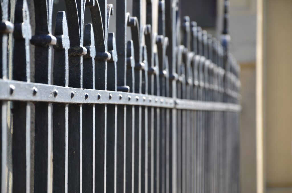 Metal railings are a robust security perimeter because they are difficult to climb (especially with sharp finials), difficult to breach without power tools, and are fixed permanently into the ground. They act as a strong visual and physical deterrent against unauthorized access.